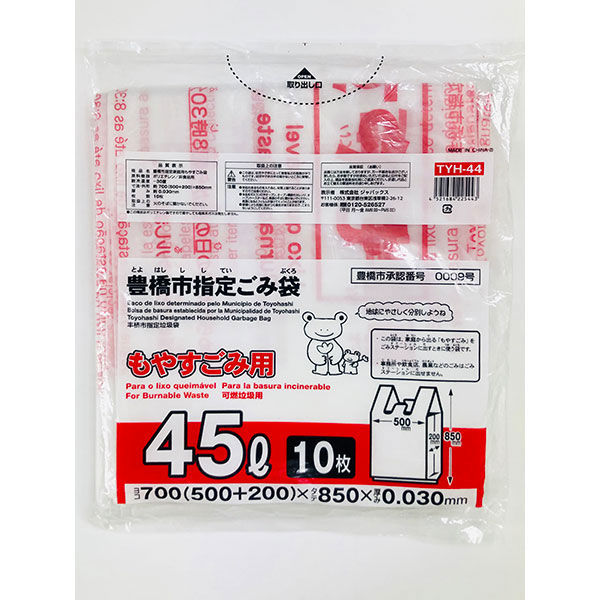 ジャパックス 豊橋市可燃 45L 手付 10枚 TYH44 1ケース(400枚)