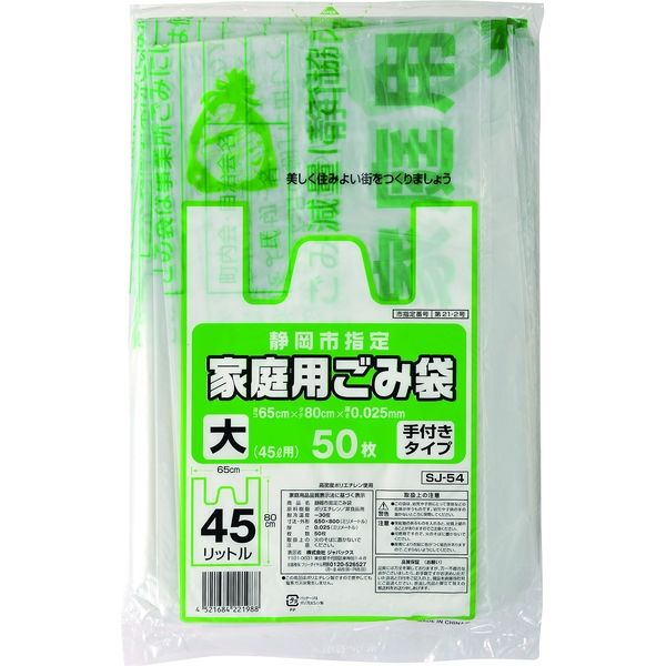 | 商品の特徴 | 静岡市指定袋 手付き45L 50枚 12冊入り 地域指定ゴミ袋(ペール袋・ポリ袋) | ||