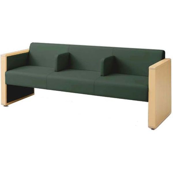 本商品:オカムラ L-40S ロビーチェア 3人掛け 各席肘 突板張り ナチュラル脚 幅1780mm ダークグリーン L340HN FXW5 1台(直送品)