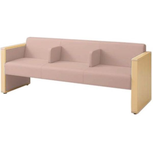 オカムラ L-40S ロビーチェア 3人掛け 各席肘 突板張り ナチュラル脚 幅1780mm ペールピンク L340HN FXW8 1台(直送品)