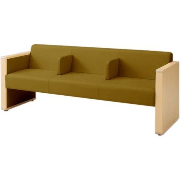 オカムラ L-40S ロビーチェア 3人掛け 各席肘 突板張り ナチュラル脚 幅1780mm イエローベージュ L340HN FZX4 1台(直送品)
