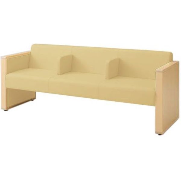 オカムラ L-40S ロビーチェア 3人掛け 各席肘 突板張り ナチュラル脚 幅1780mm イエローベージュ L340HN PC84 1台(直送品)
