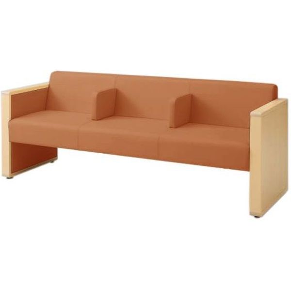 オカムラ L-40S ロビーチェア 3人掛け 各席肘 突板張り ナチュラル脚 幅1780mm オレンジ L340HN PC87 1台(直送品)