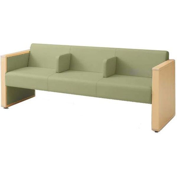 オカムラ L-40S ロビーチェア 3人掛け 各席肘 突板張り ナチュラル脚 幅1780mm グリーン L340HN PC88 1台(直送品)