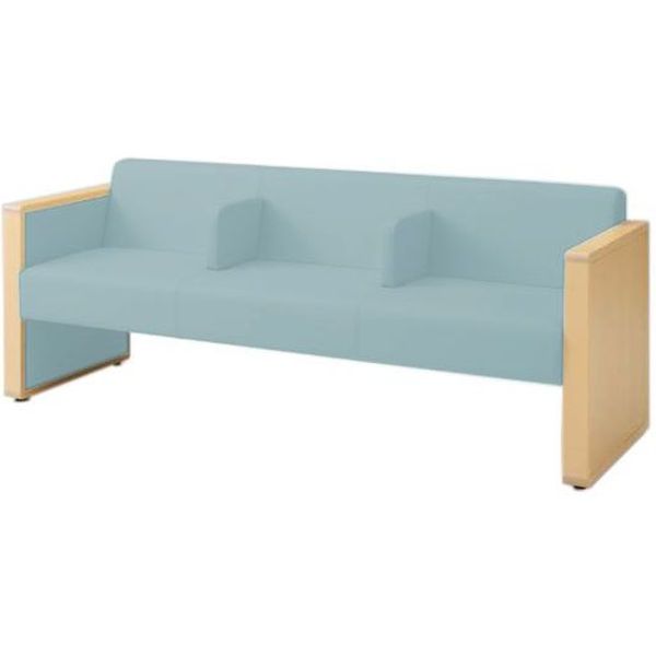 オカムラ L-40S ロビーチェア 3人掛け 各席肘 突板張り ナチュラル脚 幅1780mm ブルー L340HN PC92 1台(直送品)