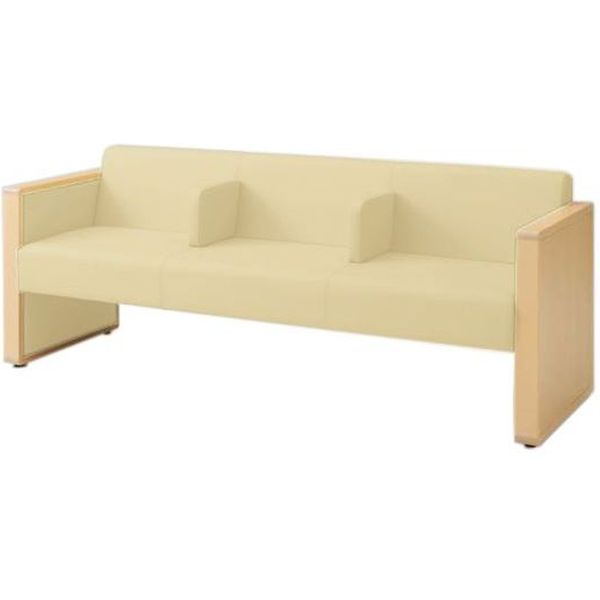 オカムラ L-40S ロビーチェア 3人掛け 各席肘 突板張り ナチュラル脚 幅1780mm リネン・アイボリー L340HN PG01 1台(直送品)