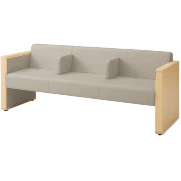 オカムラ L-40S ロビーチェア 3人掛け 各席肘 突板張り ナチュラル脚 幅1780mm アイス・グレー L340HN PG05 1台(直送品)