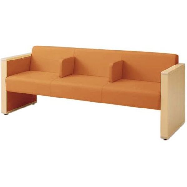 オカムラ L-40S ロビーチェア 3人掛け 各席肘 突板張り ナチュラル脚 幅1780mm タンジェリン L340HN PG07 1台(直送品)