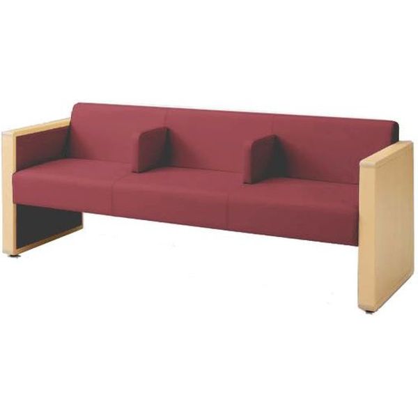 オカムラ L-40S ロビーチェア 3人掛け 各席肘 突板張り ナチュラル脚 幅1780mm ローズ・レッド L340HN PG08 1台(直送品)