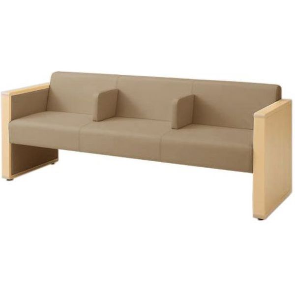 オカムラ L-40S ロビーチェア 3人掛け 各席肘 突板張り ナチュラル脚 幅1780mm デザート・グレー L340HN PG09 1台(直送品)