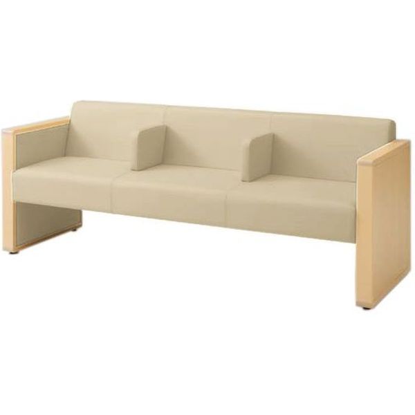 オカムラ L-40S ロビーチェア 3人掛け 各席肘 突板張り ナチュラル脚 幅1780mm サンド・ベージュ L340HN PG10 1台(直送品)