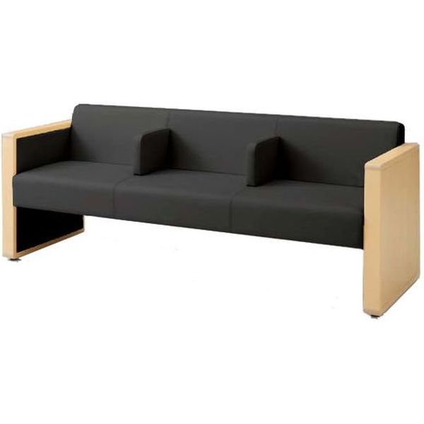 オカムラ L-40S ロビーチェア 3人掛け 各席肘 突板張り ナチュラル脚 幅1780mm ブラック L340HN FAE8 1台(直送品)