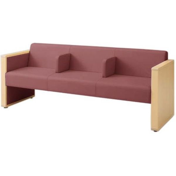 オカムラ L-40S ロビーチェア 3人掛け 各席肘 突板張り ナチュラル脚 幅1780mm スモークローズ L340HN FMV2 1台(直送品)