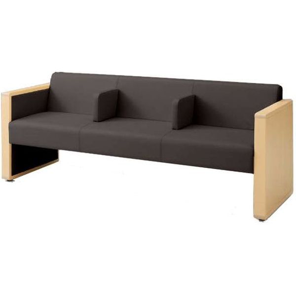 オカムラ L-40S ロビーチェア 3人掛け 各席肘 突板張り ナチュラル脚 幅1780mm ダークブラウン L340HN FXR6 1台(直送品)