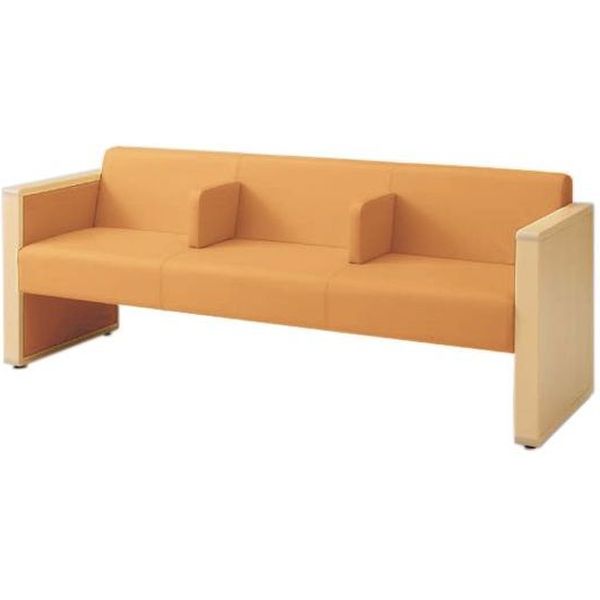 オカムラ L-40S ロビーチェア 3人掛け 各席肘 突板張り ナチュラル脚 幅1780mm イエロー L340HN FXS1 1台(直送品)