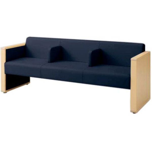 オカムラ L-40S ロビーチェア 3人掛け 各席肘 突板張り ナチュラル脚 幅1780mm ダークブルー L340HN FXS5 1台(直送品)