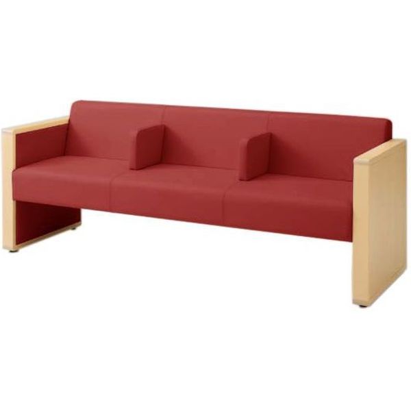オカムラ L-40S ロビーチェア 3人掛け 各席肘 突板張り ナチュラル脚 幅1780mm レッド L340HN PC79 1台(直送品)