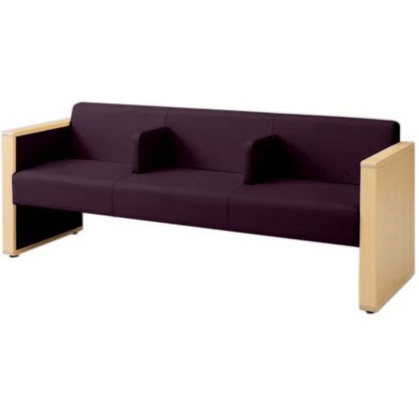 オカムラ L-40S ロビーチェア 3人掛け 各席肘 突板張り ナチュラル脚 幅1780mm パープル L340HN FXS6 1台(直送品)
