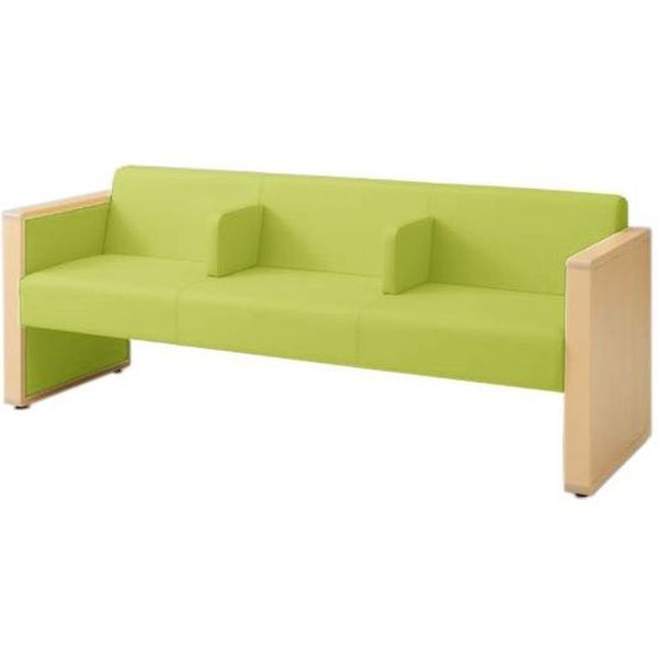 オカムラ L-40S ロビーチェア 3人掛け 各席肘 突板張り ナチュラル脚 幅1780mm ライムグリーン L340HN PD32 1台(直送品)