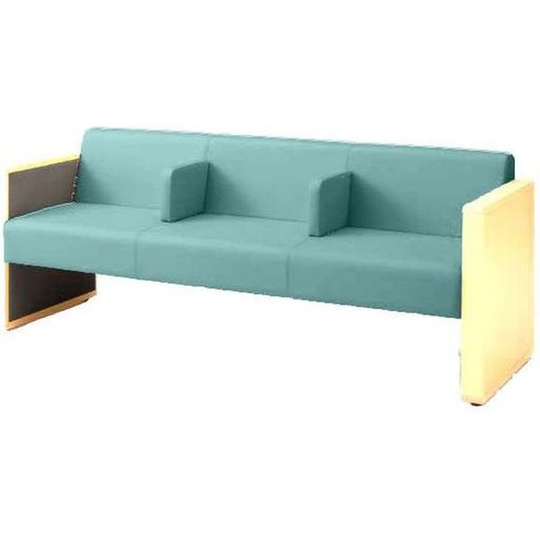 オカムラ L-40S ロビーチェア 3人掛け 各席肘 突板張り ナチュラル脚 幅1780mm セージ L340HN F002 1台(直送品)