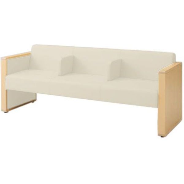 オカムラ L-40S ロビーチェア 3人掛け 各席肘 突板張り ナチュラル脚 幅1780mm アイボリー L340HN PE53 1台(直送品)