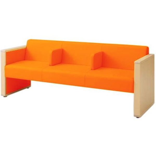 オカムラ L-40S ロビーチェア 3人掛け 各席肘 突板張り ナチュラル脚 幅1780mm オレンジ L340HN PE58 1台(直送品)
