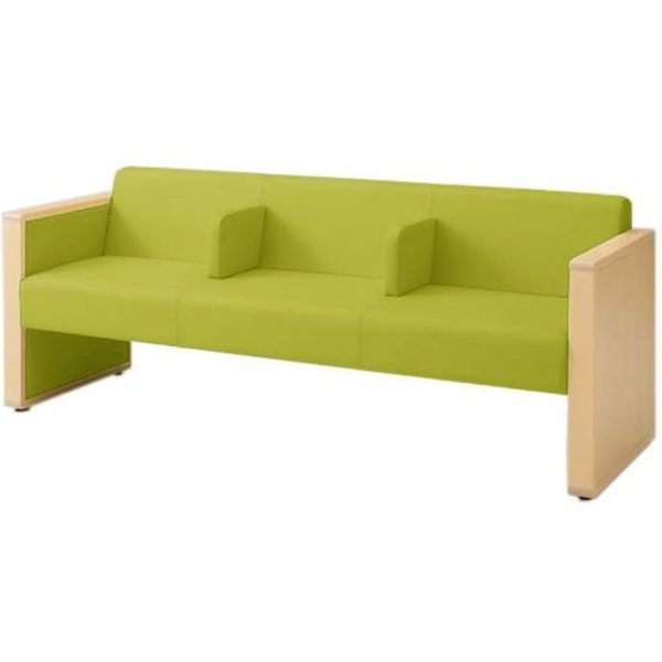 オカムラ L-40S ロビーチェア 3人掛け 各席肘 突板張り ナチュラル脚 幅1780mm イエローグリーン L340HN PE61 1台(直送品)