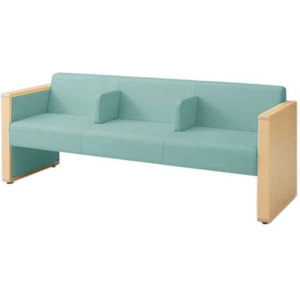 オカムラ L-40S ロビーチェア 3人掛け 各席肘 突板張り ナチュラル脚 幅1780mm セージ L340HN PE63 1台(直送品)