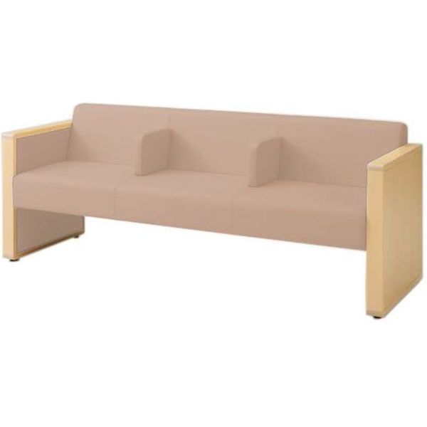 オカムラ L-40S ロビーチェア 3人掛け 各席肘 突板張り ナチュラル脚 幅1780mm ペールベージュ L340HN PB32 1台(直送品)