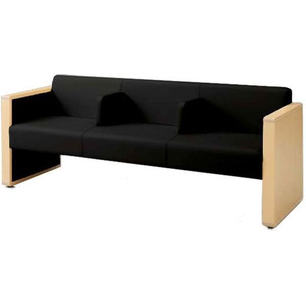 本商品:オカムラ L-40S ロビーチェア 3人掛け 各席肘 突板張り ナチュラル脚 幅1780mm ブラック L340HN FM18 1台(直送品)