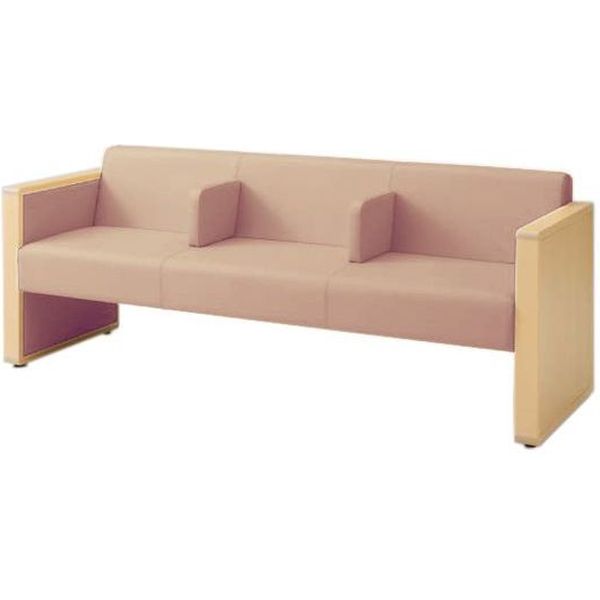 オカムラ L-40S ロビーチェア 3人掛け 各席肘 突板張り ナチュラル脚 幅1780mm ローズ L340HN FMT6 1台(直送品)