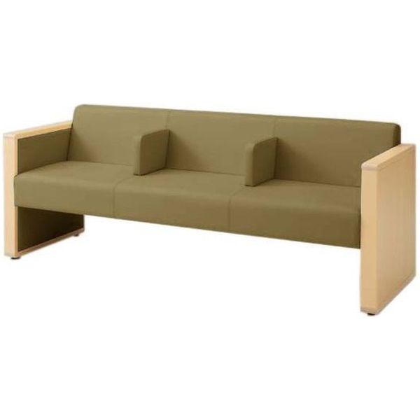 オカムラ L-40S ロビーチェア 3人掛け 各席肘 突板張り ナチュラル脚 幅1780mm キウイ L340HN F009 1台(直送品)