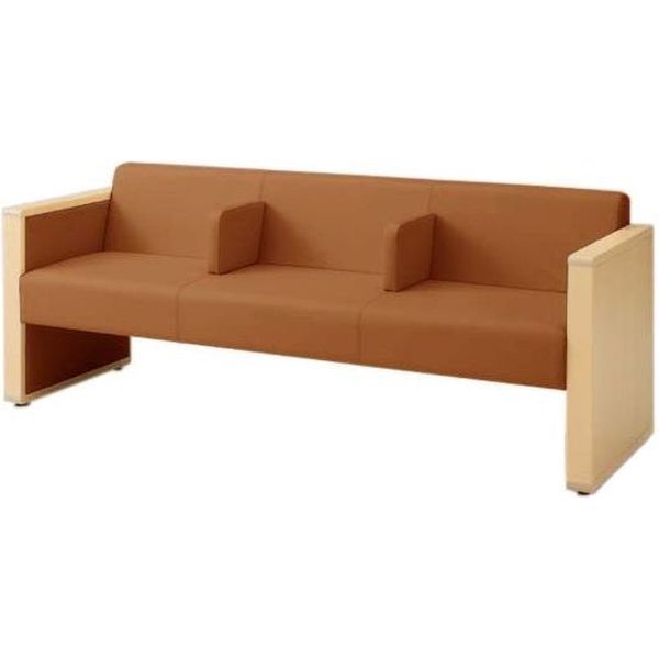 オカムラ L-40S ロビーチェア 3人掛け 各席肘 突板張り ナチュラル脚 幅1780mm パンプキン L340HN F010 1台(直送品)