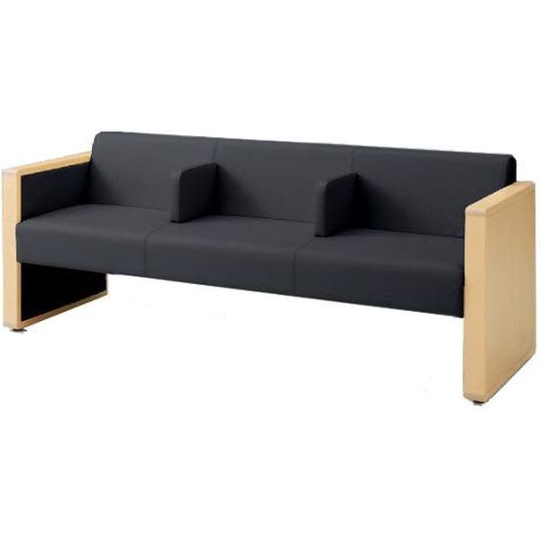オカムラ L-40S ロビーチェア 3人掛け 各席肘 突板張り ナチュラル脚 幅1780mm ブラックベリー L340HN F013 1台(直送品)