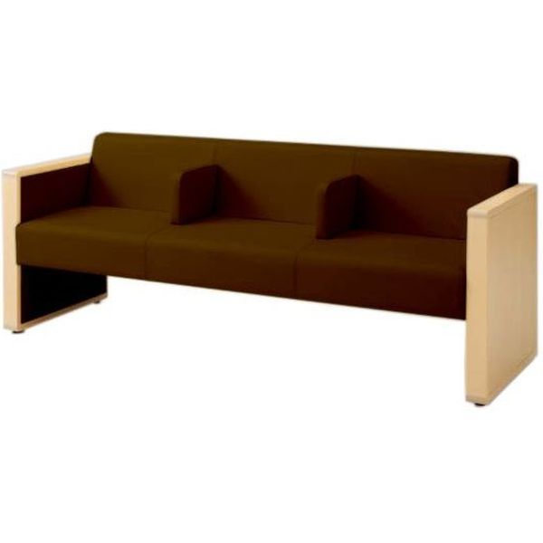 オカムラ L-40S ロビーチェア 3人掛け 各席肘 突板張り ナチュラル脚 幅1780mm ココア L340HN F018 1台(直送品)