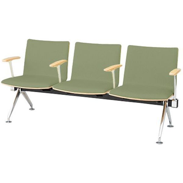 オカムラ LB38 フルパッド ロビーチェア 3人掛け各席肘付 幅1710mm グリーン LB38HC PB76 1台(直送品)