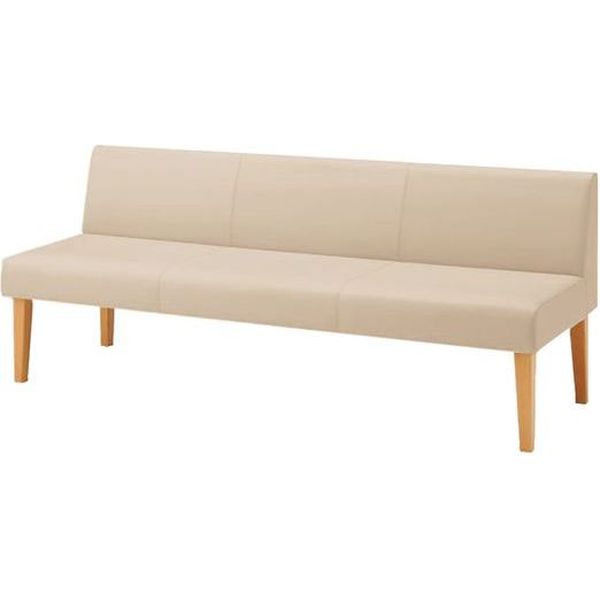 | 仕様 | イス共通仕様:背・座/再生チップウレタン、ウレタンフォーム、布張りまたはビニールレザー張り 脚/ビーチ無垢材ウレタン塗装 | 寸法 | 1800幅×600奥行×710高さ×425座高(mm) |