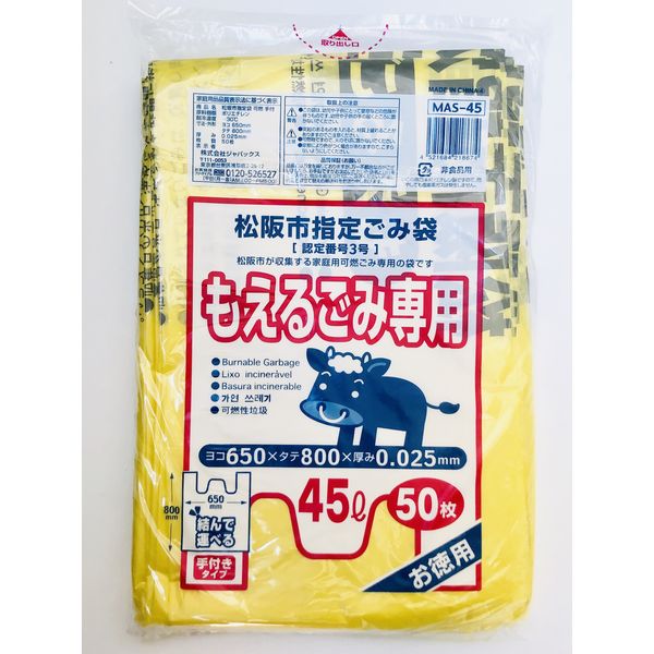 ジャパックス 松阪市指定袋可燃45L(L) 手付き MAS45 1袋(50枚)