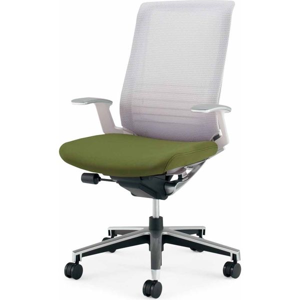 【組立設置込】コクヨ インスパイン オフィスチェア ハイバック T肘 ナイロンキャスター 布張 ホワイトグレー/オリーブグリーン 1脚(直送品)
