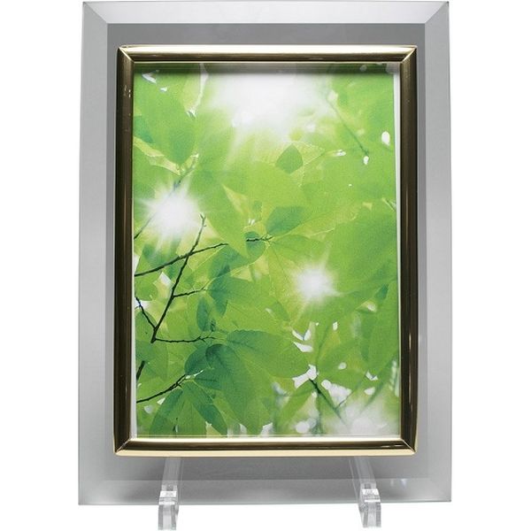 | 商品の特徴 | ベーシックなガラスフレーム。枠が透明のため、背景、収納する写真の色目や柄を問わずフィットする。ガラスの光沢、金モールの輝きが高級感を演出。縁は面取り加工が施され、角度によって立体感が出せる。写真を飾る他にも、店頭POPやメニュー立てとして使える。 | ||