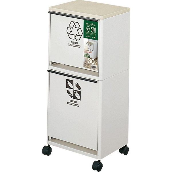 | 商品の特徴 | ゴミが捨てやすいワイドな開口。ポリ袋止め付き。キャスター付きで移動もラクラク。 ●容量:30.5リットル(上段12.5リットル+下段18リットル) | ||