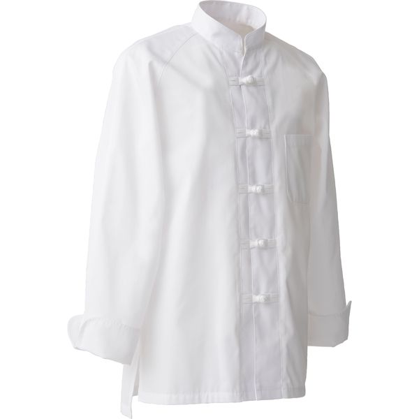 | 商品の特徴 | ライトツイルという新しく開発した生地のコックコート、チャイナ風ボタン版です。商品開発意図は昔ながらの分厚いコックコート同等の耐久性を持ち合わせながら、生地が薄く、着用感が軽くて涼しいというところです。脇にスリットあり、裾を出して着用することにも適しています。ポリエステル70%、綿30%ですが綿リッチな風合いも特徴です。一度ご試着いただき新しい着心地を感じて下さい。制電糸入り。透け防止、UVカット機能あり。男女兼用。 | ||