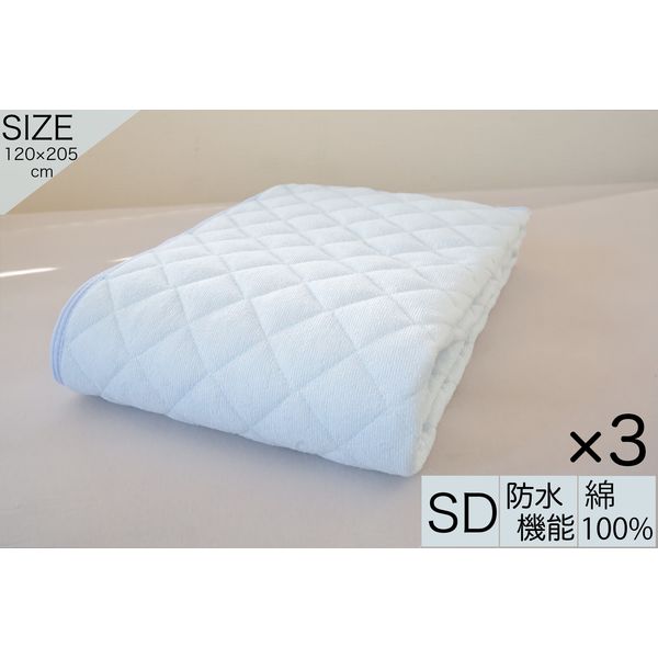 防水のセミダブルサイズ 敷パットとなっております。防水なので介護・あかちゃん・こども・ペットなど様々な場面で活躍出来ます。ブルー3枚となっております。