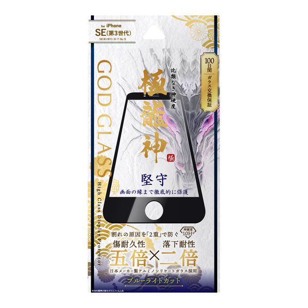 iPhone SE (第3世代/第2世代) ガラスフィルム 液晶保護フィルム GOD GLASS 極龍神 全画面保護 ブルーライトカット(直送品)