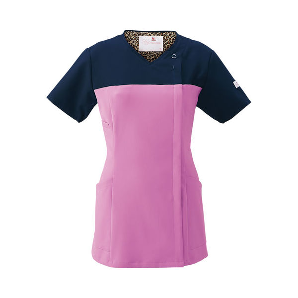 - ・洗濯性を改善しながらも、柔らかな風合、優れた吸水性と拡散性、ドライ感を実現させた新開発のポリエステル素材。・ウエアの着脱による髪の乱れ、化粧崩れなど、女性ならではのストレスを解消するために、かぶって着るのではなく、羽織って着る構造を独自に生み出しました。・アームホールに小さなショルダーバッグを付けた形状のポケットがPHSやタブレットなどの重さを分散軽減します。・胸元に濃いカラーをあしらった、おしゃれなバイカラーのデザイン。気になる胸元の汚れを目立たなくし、心地よく働けます。チラリとのぞくヒョウ柄もオシャレ。・前身頃に長めのスリットを入れることで、作業している間に、ヒップまで隠れる長めの丈がずり上がるのを防ぐ構造にしました。・袖口の下側にゴムが入っているため、腕を上げた際の袖口の開きすぎを抑えます。・動きやすさの秘密はワコール独自の「皮膚伸展基準線理論」。生地の伸縮方向を考慮した独自設計が、背中や肩まわりの動きを妨げず、腰の曲げ伸ばしもスムーズにします。