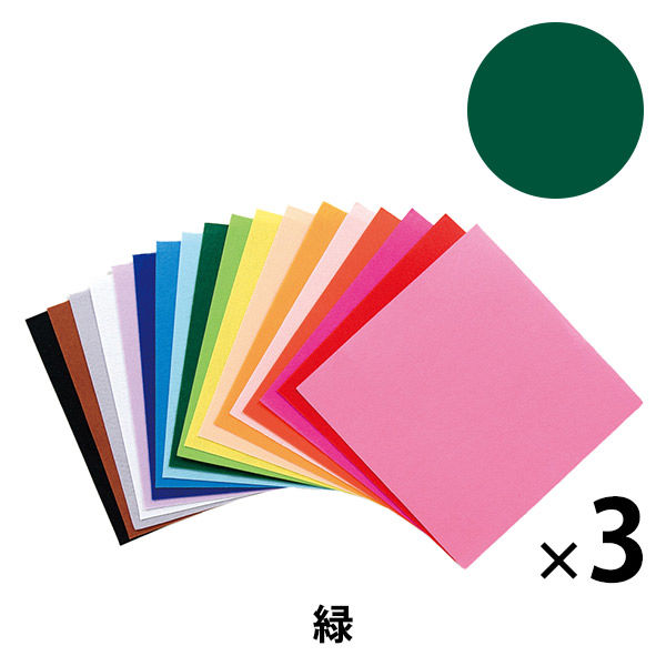 日幼 工作フェルト 単色 緑 300×300mm 1セット(15枚:5枚×3)