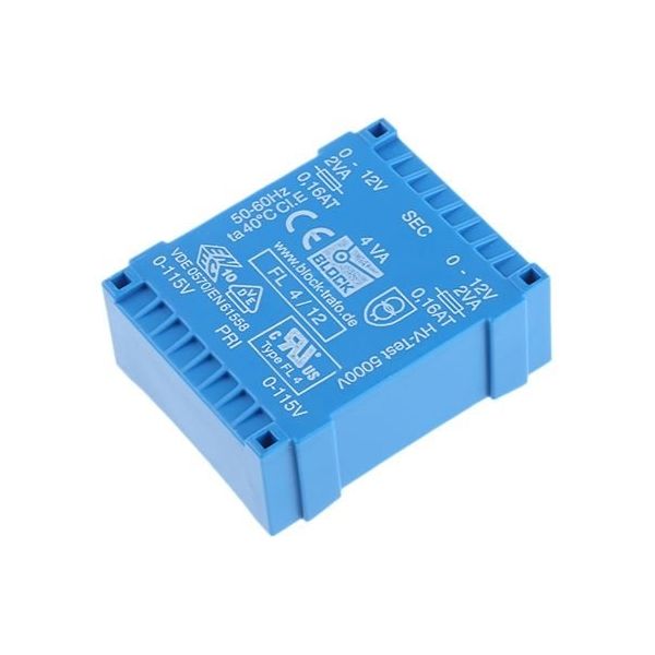基板実装用トランス 一次側:115 V ac, 230 ac 二次側:12V 定格電力:4VA, FL 4/12 出力数:2(直送品)