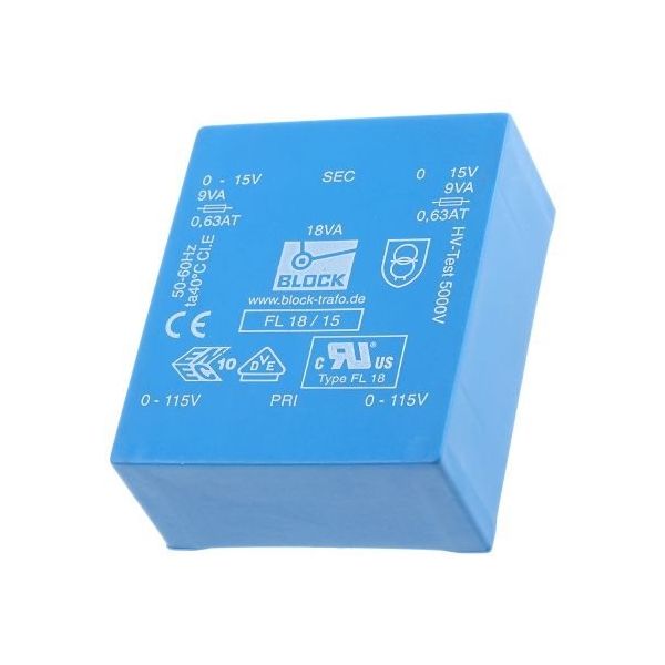 基板実装用トランス 一次側:115 V ac, 230 ac 二次側:15V 定格電力:18VA, FL 18/15 出力数:2(直送品)