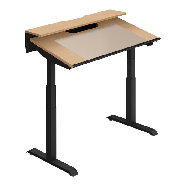 すべての姿勢を叶える1台を。電動昇降機能に加え、デスク天板の傾斜角度を調整できワーカーのモードチェンジを可能にするシークエンスチルト。