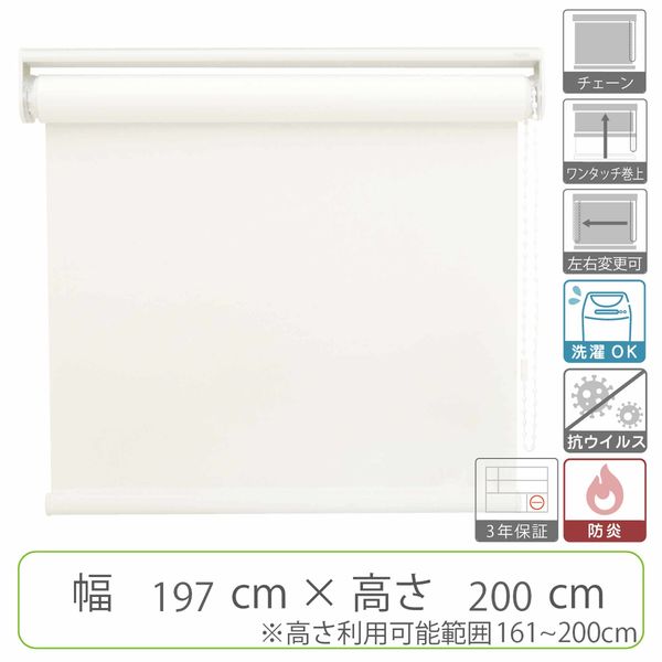 | 寸法 | 製品幅 197cm ×高さ161cm 操作チェーン140cm スクリーン幅は製品幅から-36mmとなります。 | 操作位置 | 操作チェーンの左右変換ができるので、操作チェーンの位置を気にすることなく、お部屋の模様替えや家具の配置換えができます。 |